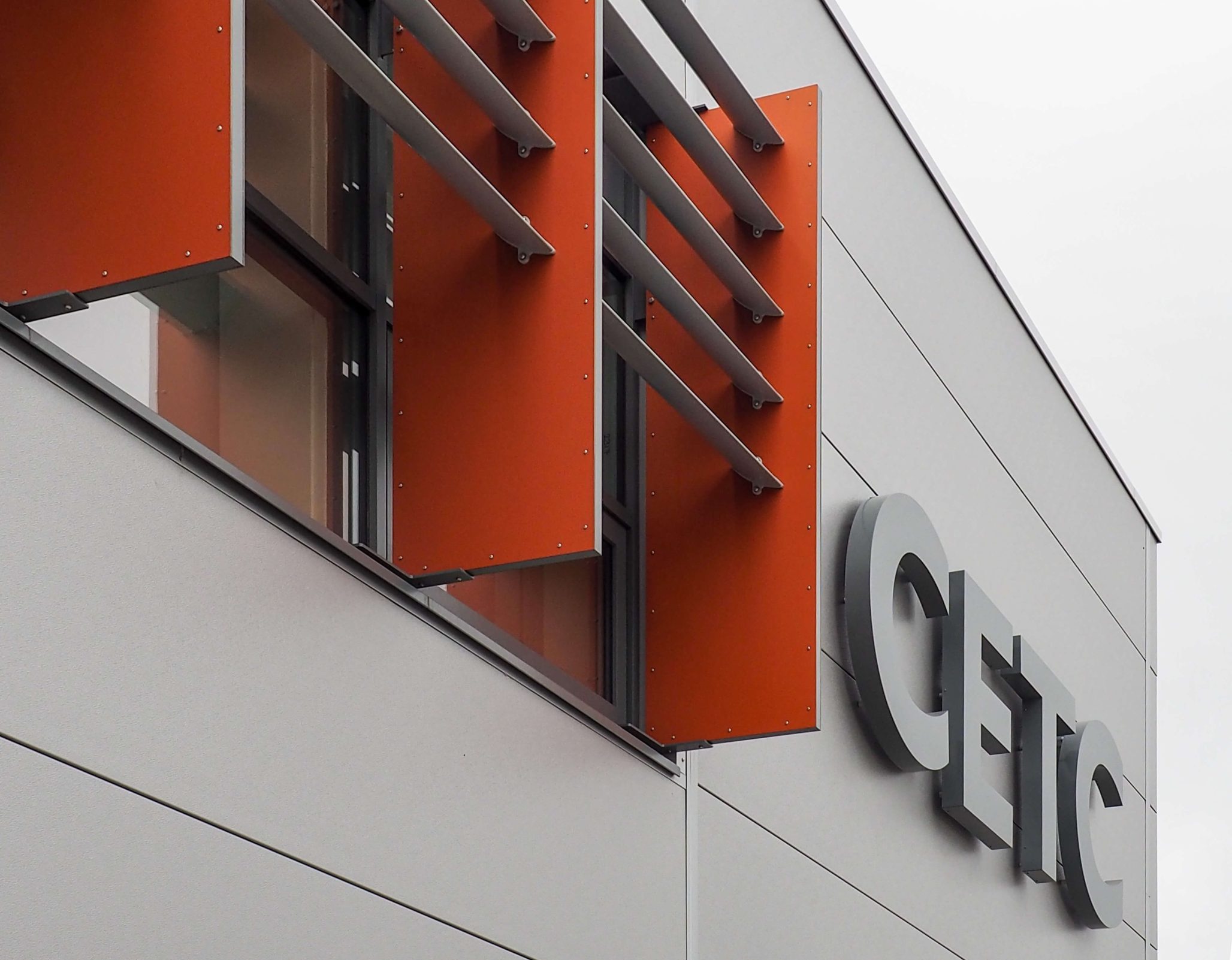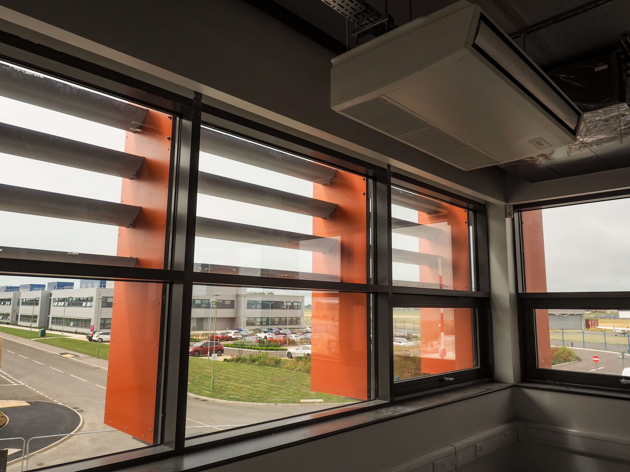 The sun came out just before Ben and Chris left the site, proving how useful the striking orange brise soleil will prove.