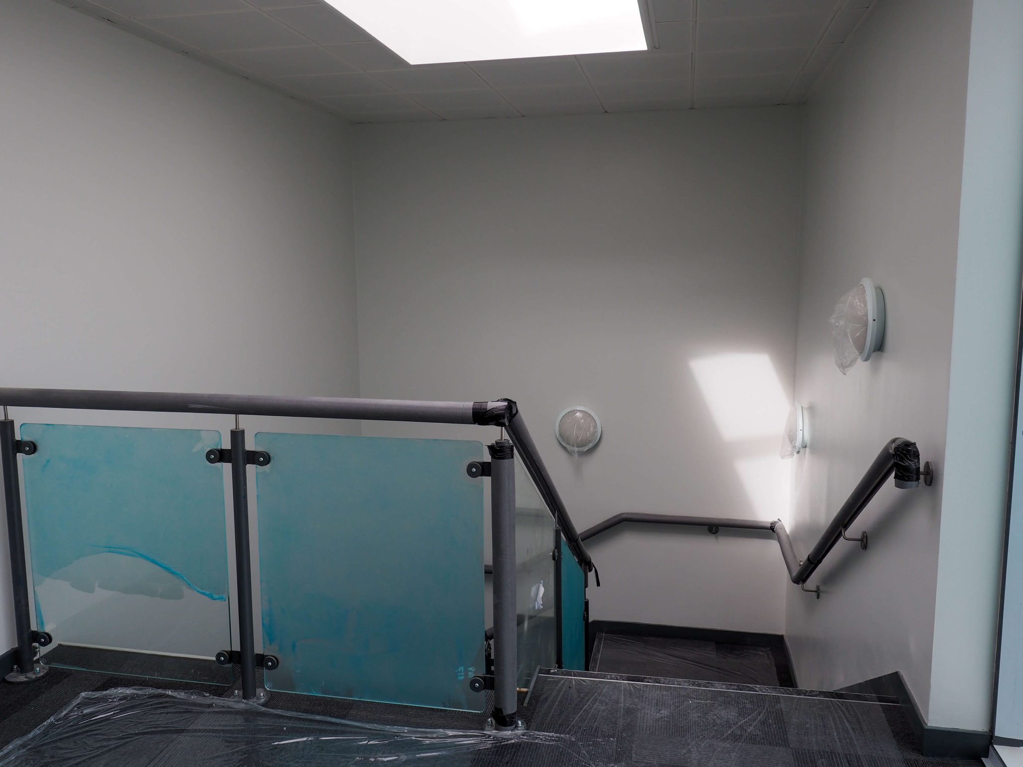 M&E 2nd Fix is well under way throughout the building, and indeed complete in many areas. Final decorations are taking place with the white walls and grey window surrounds looking particularly crisp.