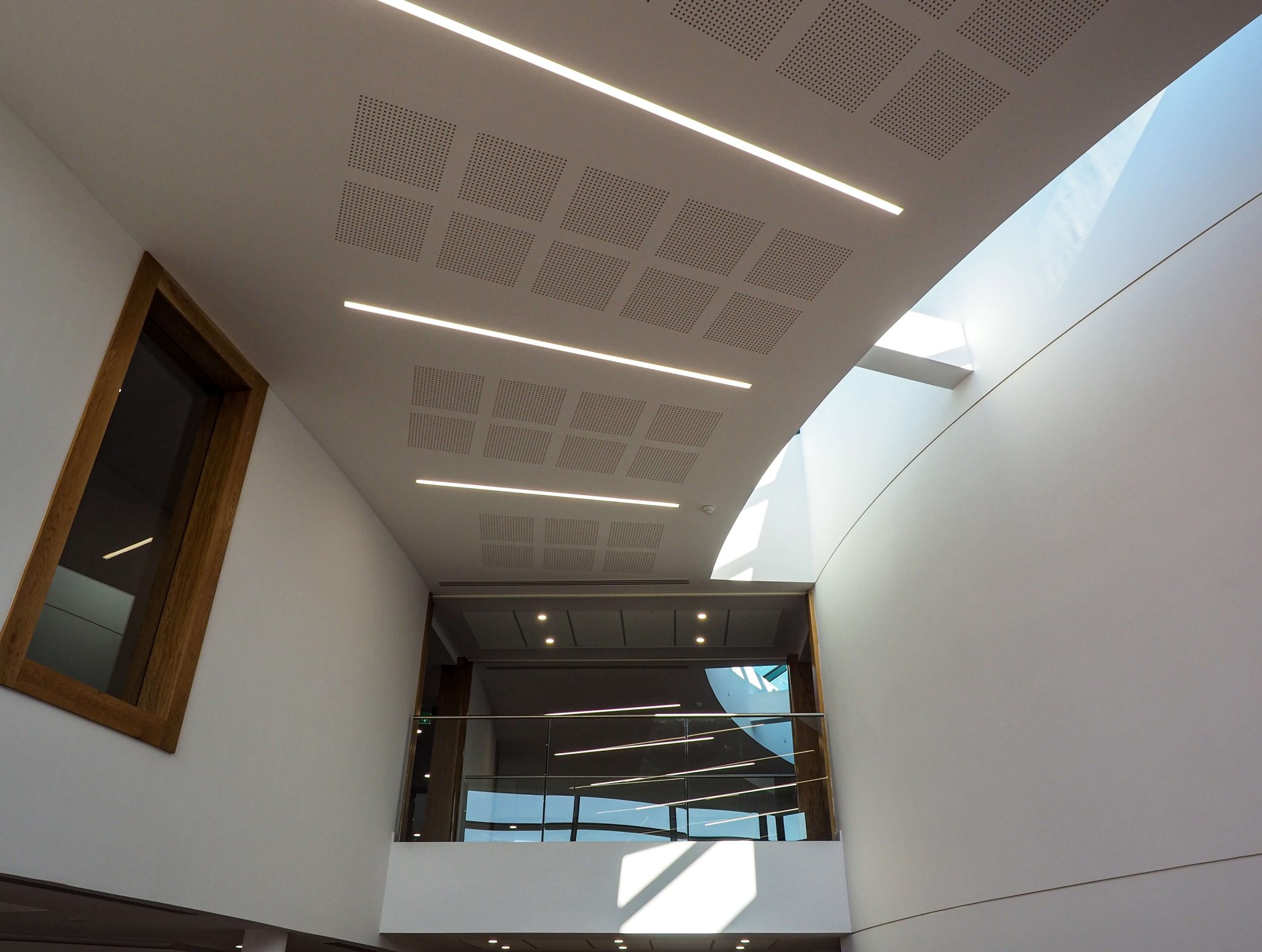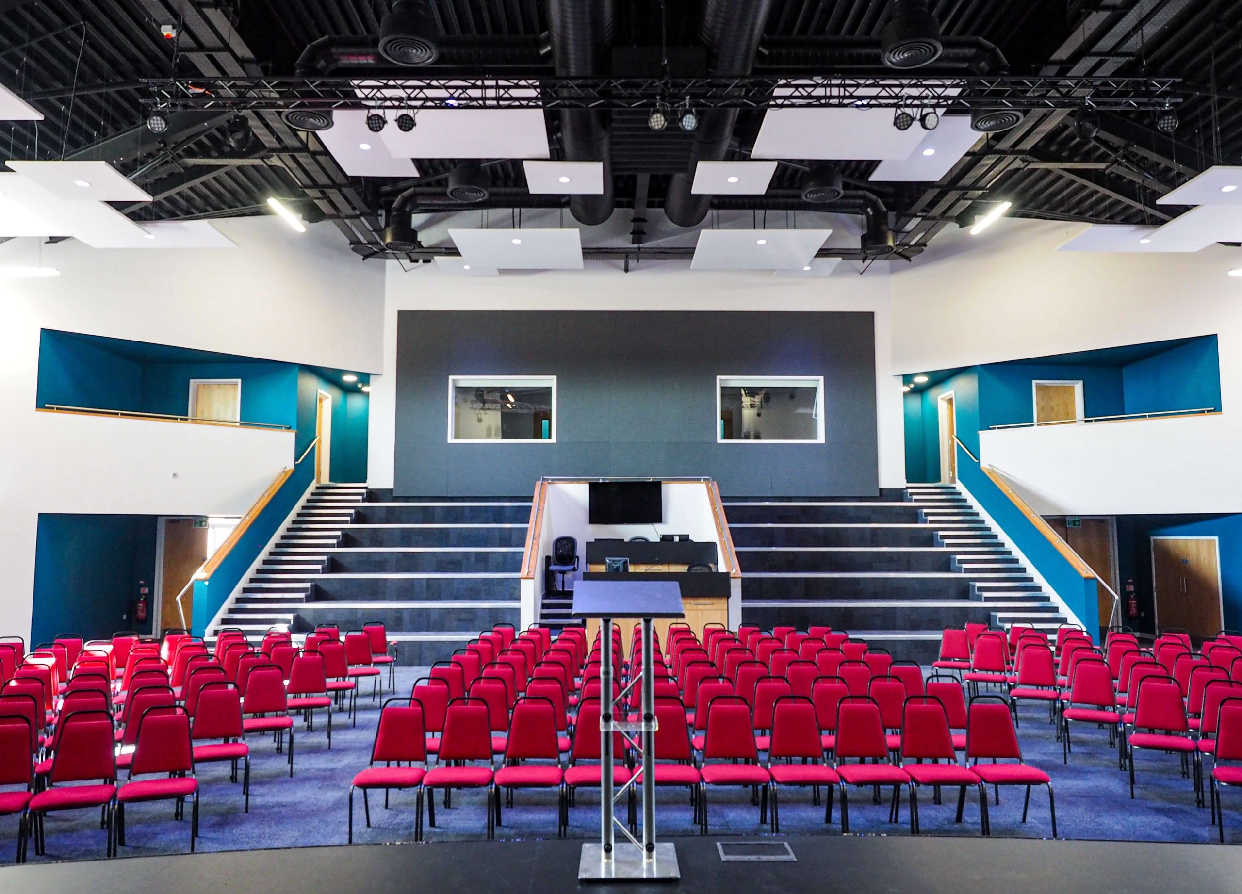 The Sanctuary is simply a stunning space that will no doubt be the focal point of the building. Having said that the interior as a whole looks magnificent. From the cool curved walls to the teal highlights, feature lighting and curtain walling, This is a church clearly fit for the 21st Century!