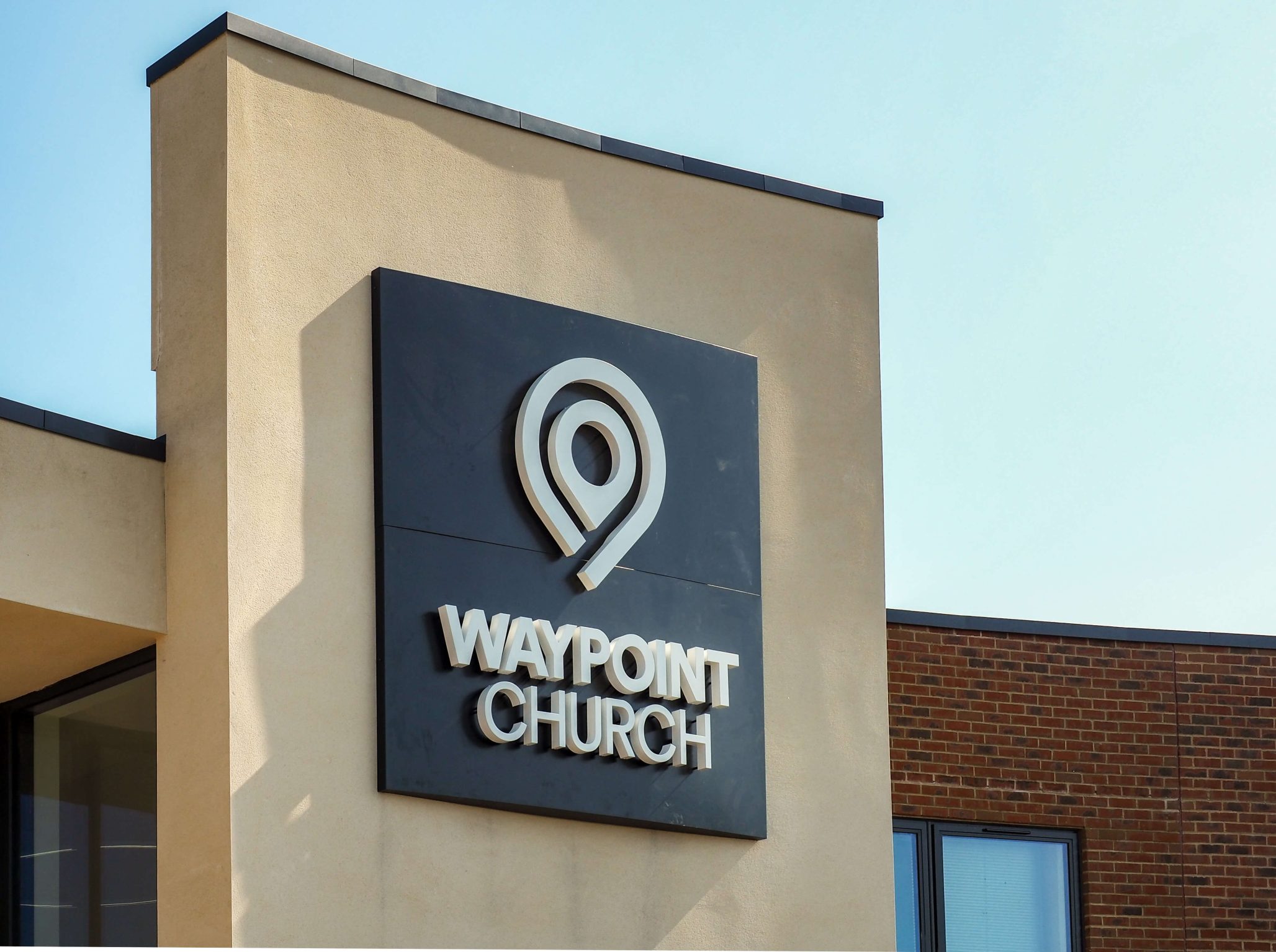 Externally the building makes a confident and impressive mark on the landscape. Ben and Chris arrived just as the new Waypoint sign was being erected on the large cream rendered frontage. A fitting end to what has been a superb year blogging the construction of this outstanding new church.