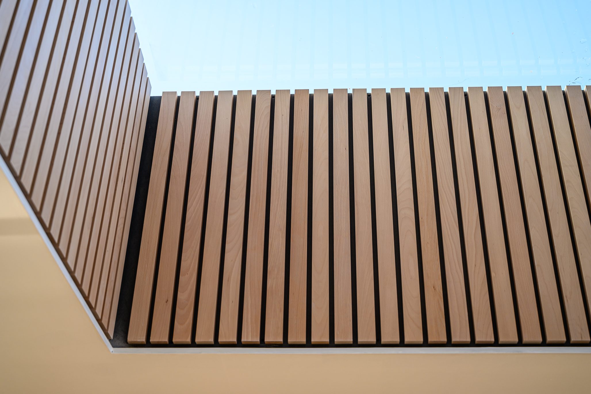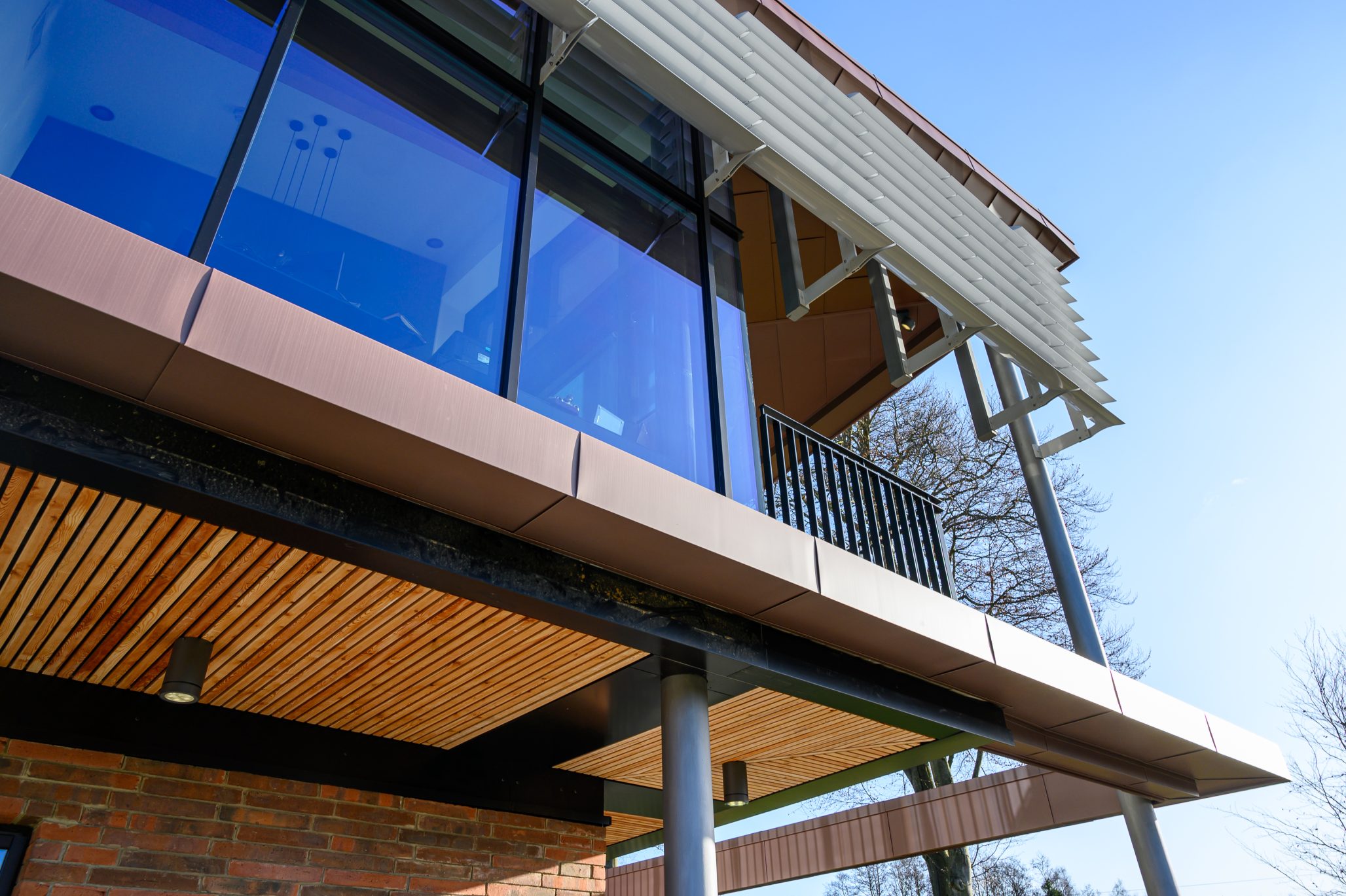 Managing Complex Timber and Zinc Construction Elements: The building incorporated a bespoke timber frame and zinc roof and cladding, both of which required careful sequencing and protection to achieve the desired finish. The timber frame was developed as a contractor-designed element in collaboration with the specialist subcontractor, with installation sequences carefully planned to accommodate large structural members, including a 22-metre-long beam. The zinc roof and cladding were installed early in the programme, with Amiri proposing refinements to detailing and folds to improve the final aesthetic. Robust protection measures were maintained throughout the build to preserve the quality of these elements.