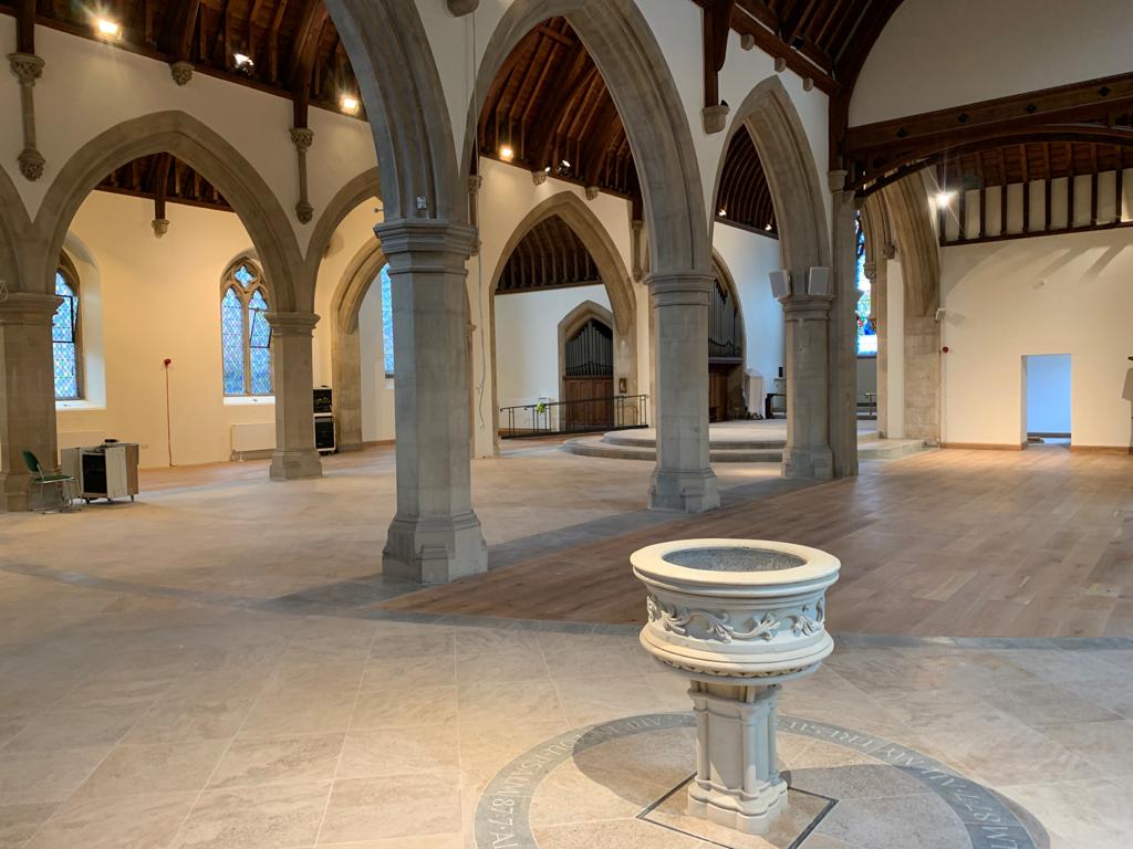 The works were carried out in phases and included a complete re-flooring of the church to create a safe, single-level surface, the installation of underfloor heating, internal re-ordering, and the formation of a new chapel. Further phases involved the creation of a new community meeting space, kitchen, and toilets, followed by the development of additional community facilities including a purpose-built pre-school, office spaces, staff accommodation and a catering kitchen.